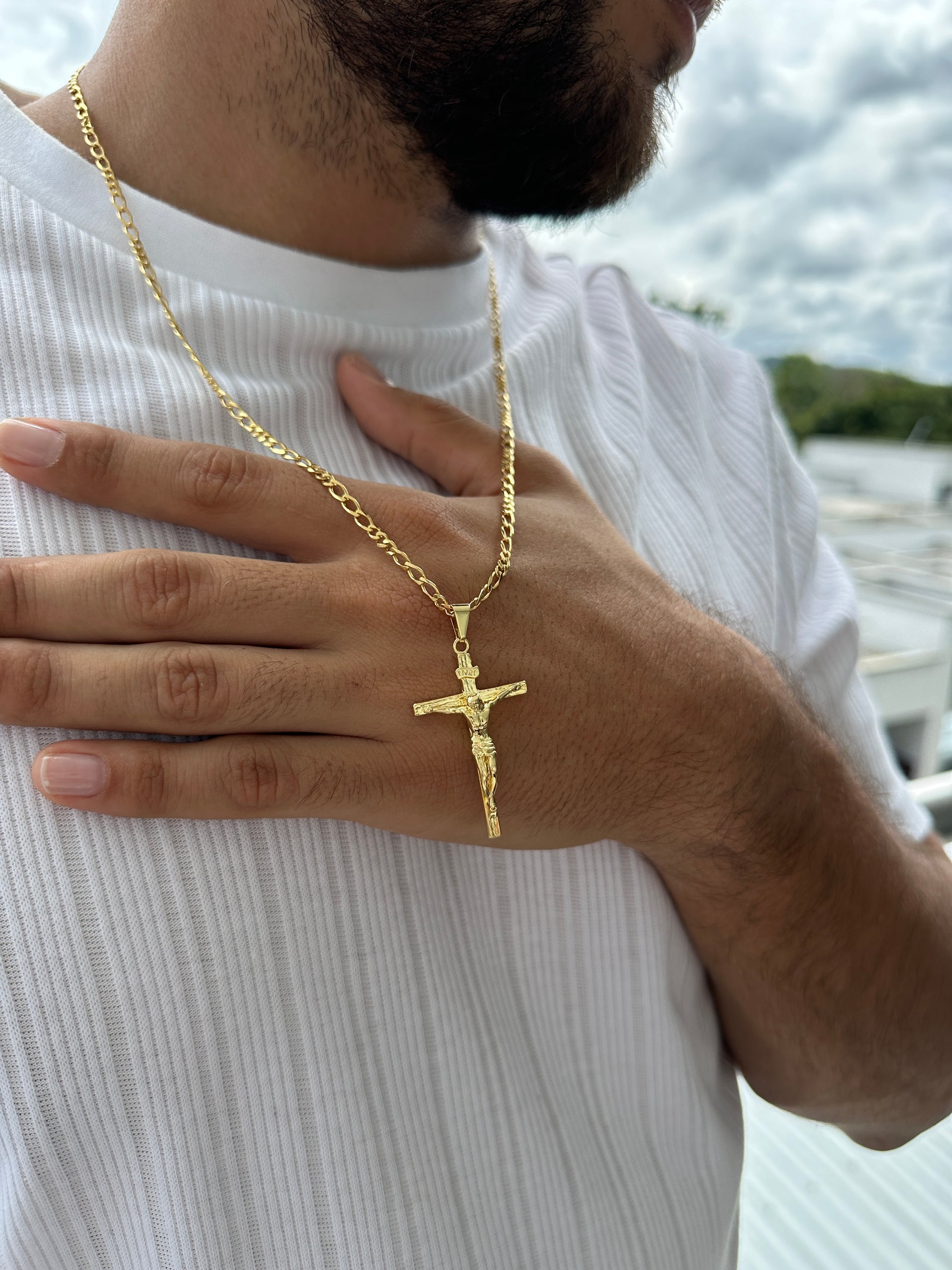 CADENA 3X3 + DIJE CRUZ MADERO