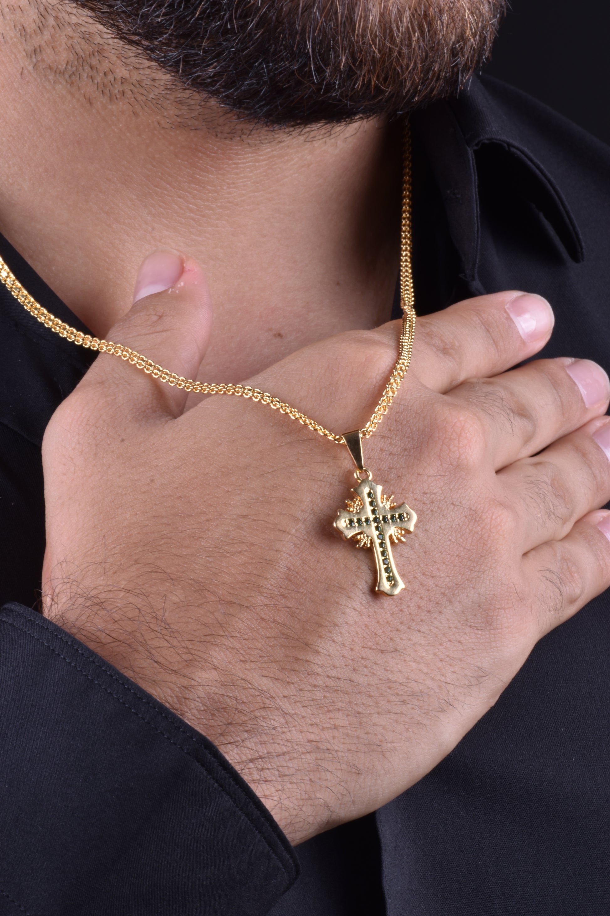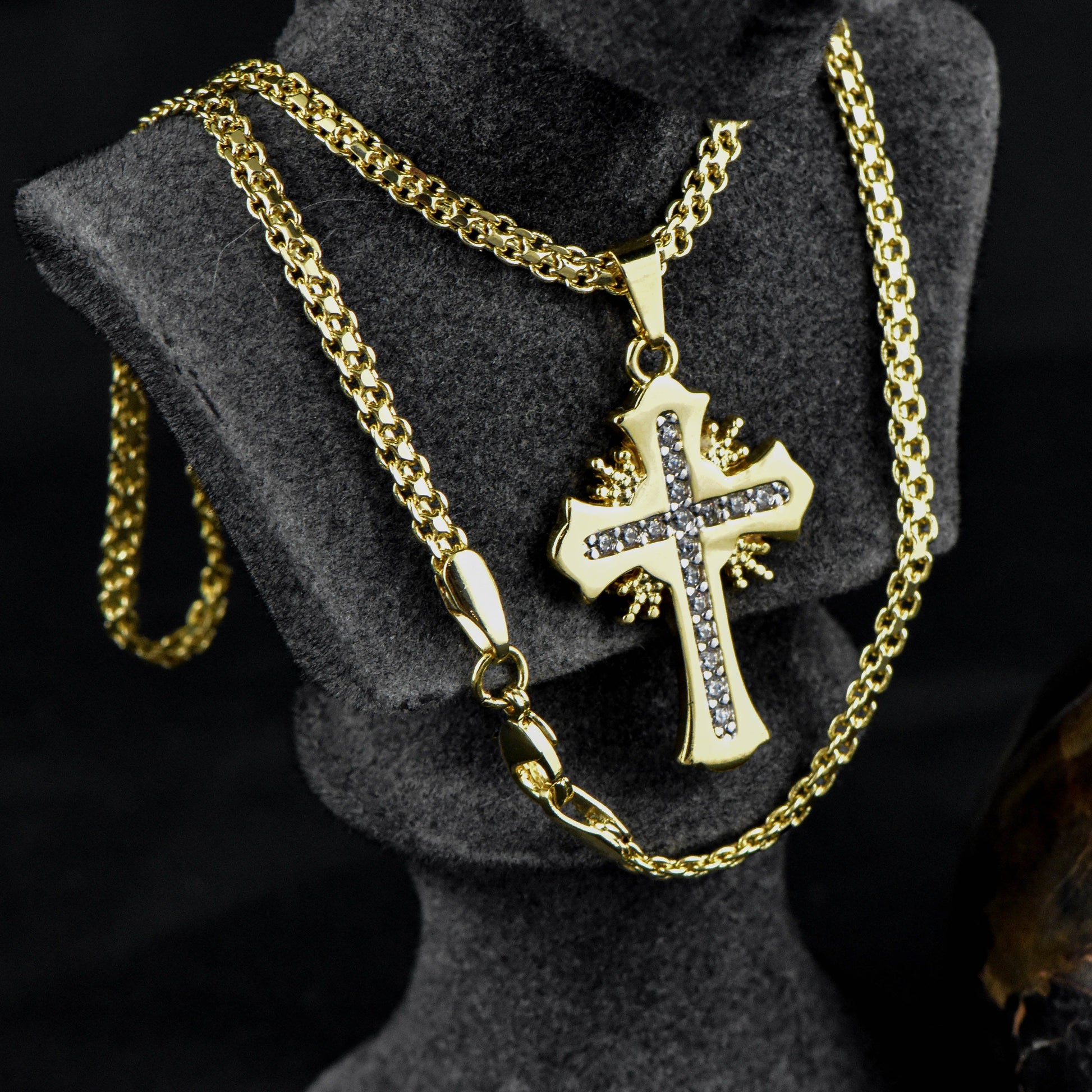 Cadena China 65cms+ Colgante Cruz Sagrada Circonia Cristal