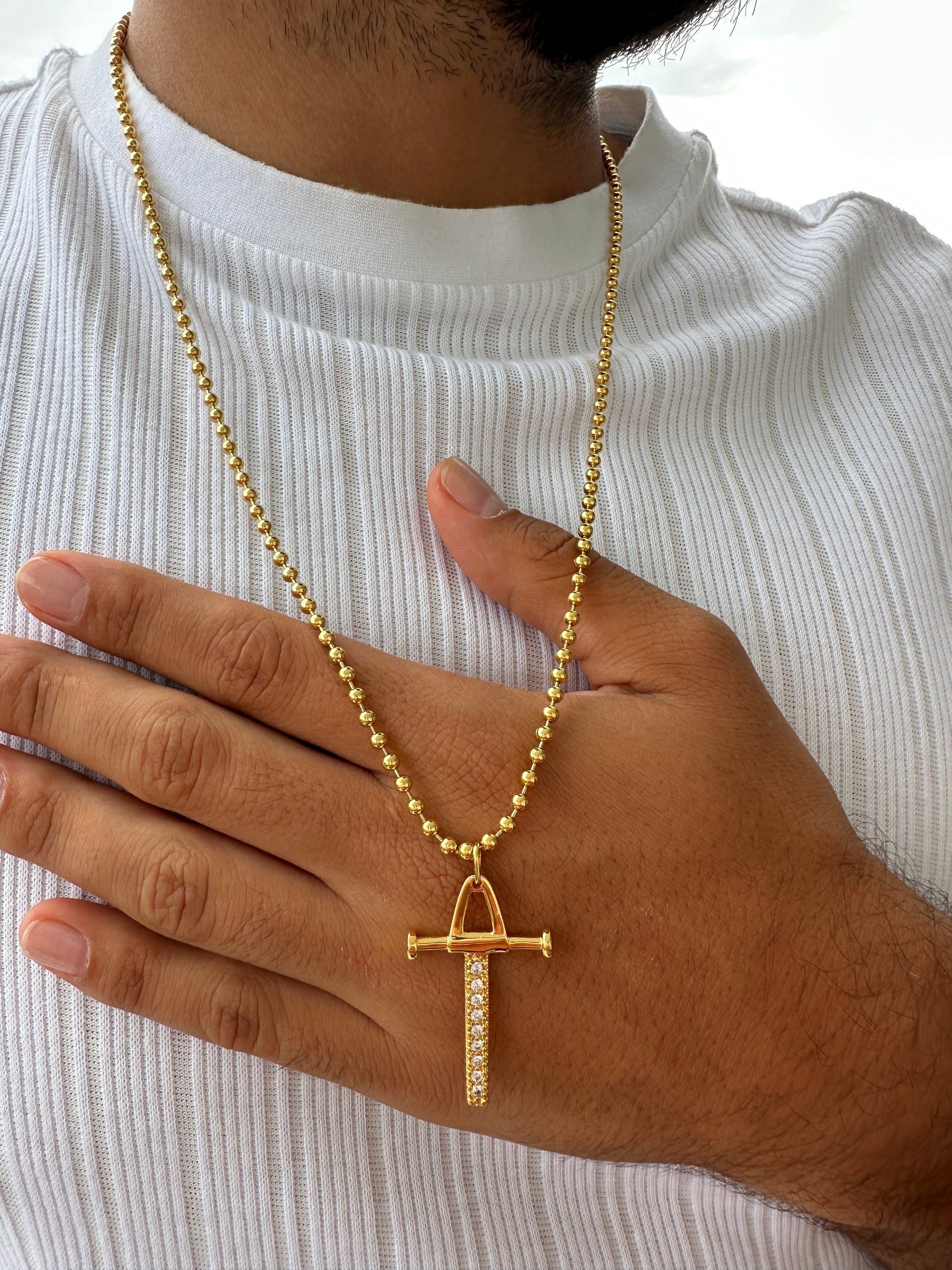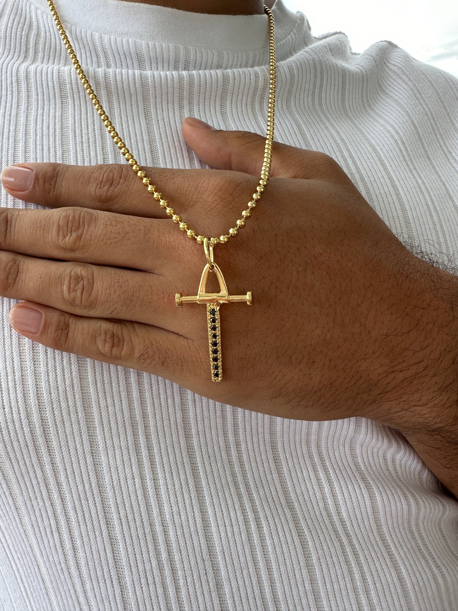 Cadena Militar 65cm + Colgante Cruz Péndulo Circonia Negra